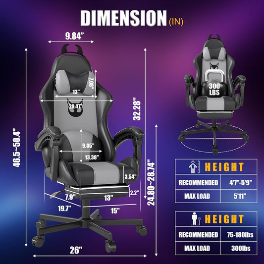 Gaming Chair with Little Devil Decor,Ergonomic Computer Chair with Footrest and Lumbar Support,Height Adjustable Game Chair with 360°-Swivel Seat and Headrest and for Office or Gaming